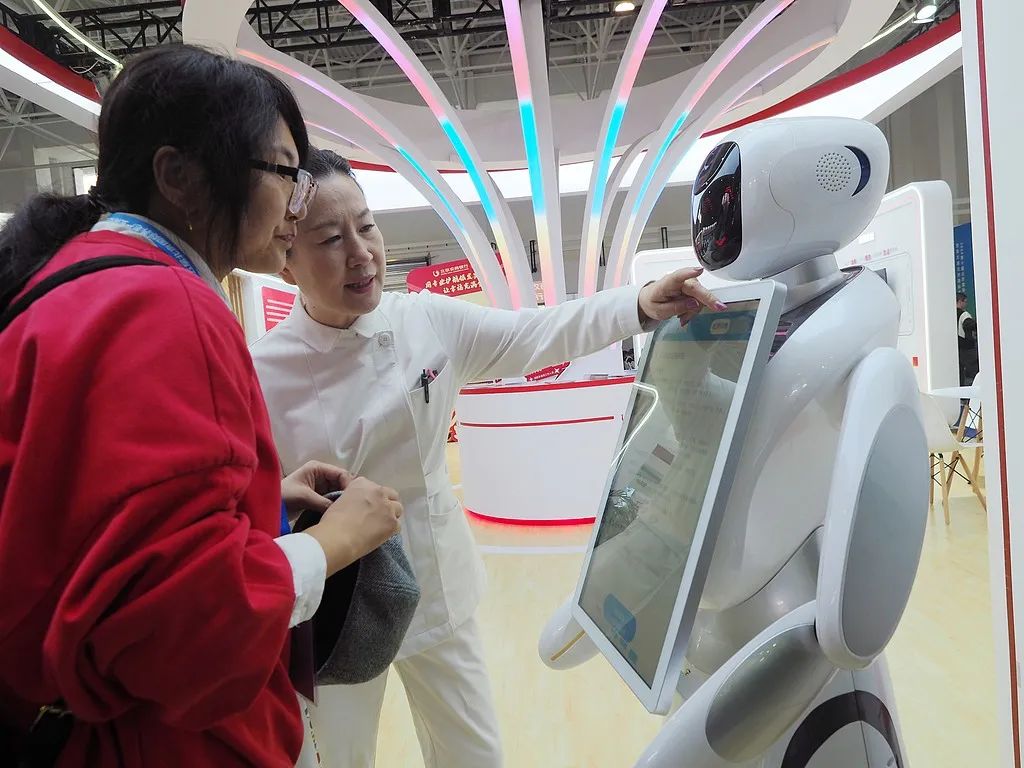 在西安举办的第二届西安国际养老产业博览会上,观众在咨询智慧智能护理机器人。